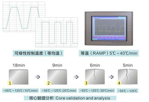 快速溫度變化試驗(yàn)箱主要用于考察各種工業(yè)制品熱機(jī)械性能引起的失效,當(dāng)構(gòu)成產(chǎn)品各部件的材料熱匹配較差,或部件內(nèi)應(yīng)力較大時,溫度循環(huán)試驗(yàn)可引發(fā)產(chǎn)品由機(jī)械結(jié)構(gòu)缺陷劣化產(chǎn)生的失效。溫度變化率一般在5~20℃/分之間,實(shí)現(xiàn)以最快的速度真實(shí)再現(xiàn)所測樣件應(yīng)用環(huán)境條件,一般應(yīng)用于光電器件、互連電路、組件單元及電子設(shè)備的篩選試驗(yàn)和失效模式評估。是發(fā)現(xiàn)產(chǎn)品設(shè)計缺陷和工藝問題的有效方法。