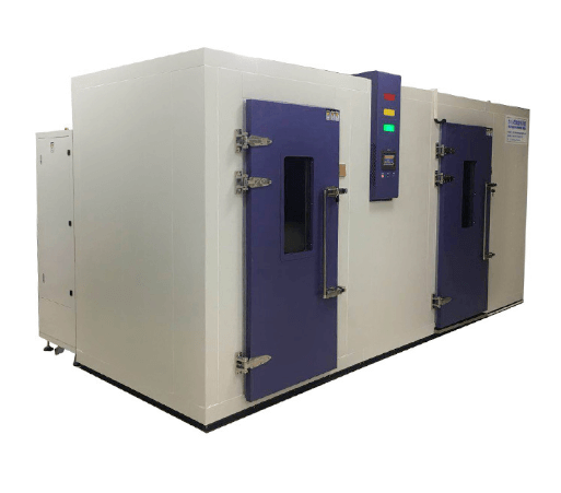 步入式高低溫試驗室應用于國防工業、航天工業、自動化零組件汽車部件、電子電器件、塑膠、化工、制藥工業及相關產品之耐熱、耐寒測試,為產業界提供大型零件,半成品,成品之大型溫濕度測試環境空間,適合于測試產品量多、體積大之試驗設備。