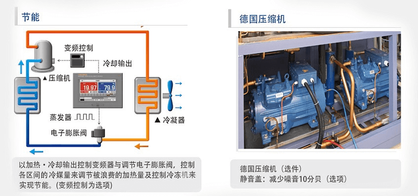 | 冷卻系統(tǒng) | 歐美原裝壓縮機(jī)+鰭片式蒸發(fā)器+氣冷式(水冷式)冷凝器(可選風(fēng)冷卻方式) | ||||||